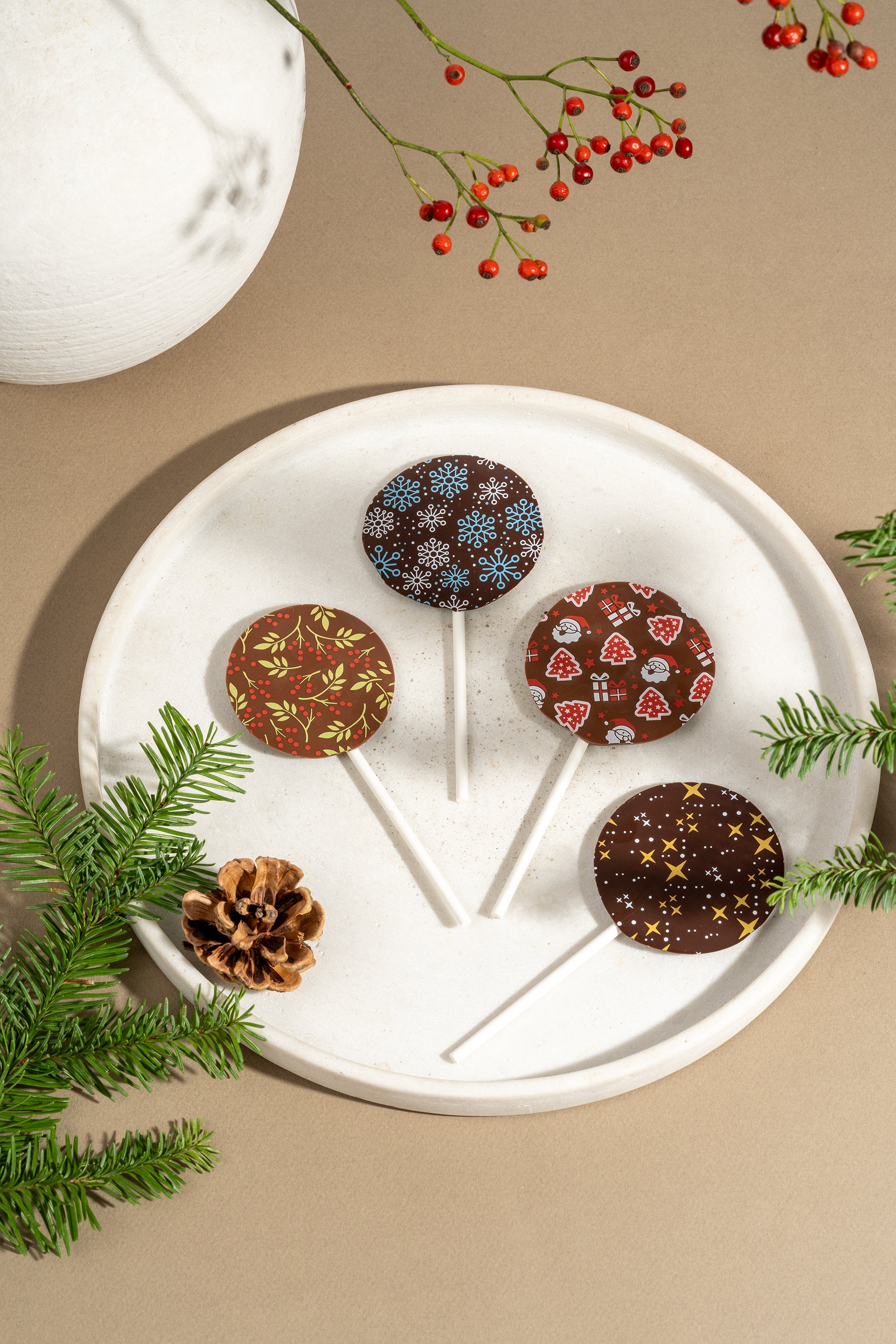sucette de chocolat au lait ou de chocolat noir avec de jolis imprimés festifs